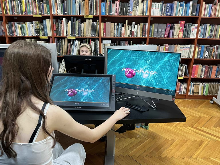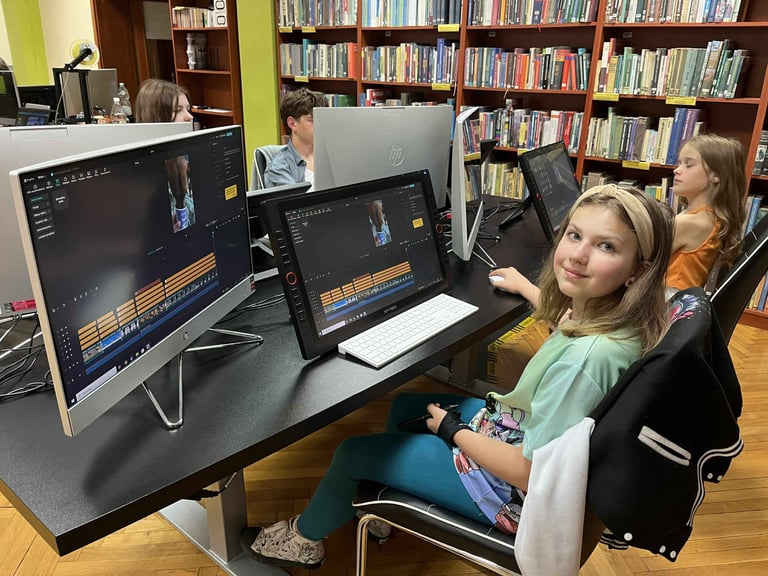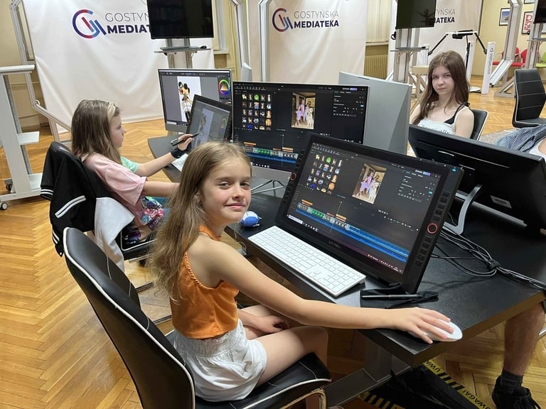 W sobotę, 14 czerwca 2025 roku, w Bibliotece Publicznej Miasta i Gminy w Gostyniu poprowadziłam warsztaty montażu filmowego w ramach programu profilaktycznego „Akademia Pożytecznej Rozrywki 3.0”. W zajęciach wzięły udział dzieci i młodzież, którzy interesują się tworzeniem filmów z własnych zdjęć i nagrań.