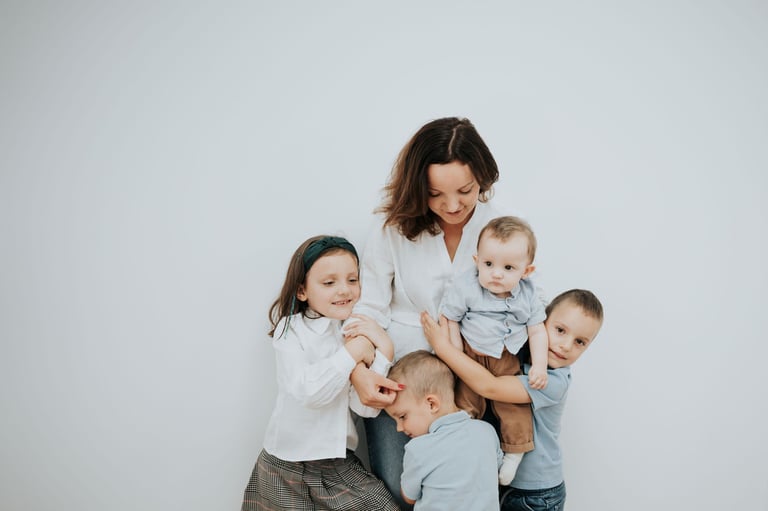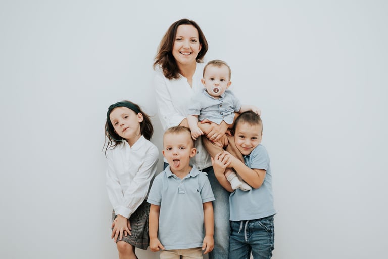 Miałam przyjemność zorganizować wyjątkową sesję zdjęciową w studio dla mojej siostry Zosi Furmann-Daniel oraz jej czwórki wspaniałych dzieci: Jagienki, Rysia, Szymona i Kacperka. Było to nie tylko rodzinne spotkanie, ale i piękne doświadczenie pełne ciepła, uśmiechów i zabawy.