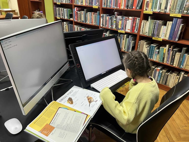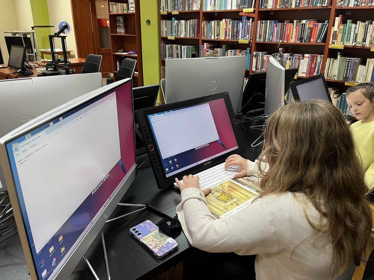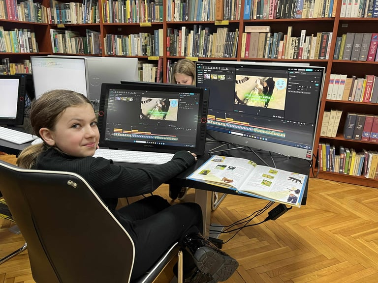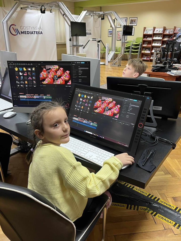 W sobotę 11 października poprowadziłam w Bibliotece Publicznej Miasta i Gminy w Gostyniu warsztaty filmowe w ramach Pracowni Filmowej. Podczas zajęć dzieci i młodzież uczyły się, jak tworzyć krótkie filmy – od pomysłu po montaż. Wspólnie wybieraliśmy tematy inspirowane bibliotecznymi książkami i encyklopediami, wyszukiwaliśmy ciekawostki, zdjęcia oraz darmowe materiały wideo, a następnie składaliśmy wszystko w gotowe produkcje. W efekcie powstały między innymi filmy o Starożytnej Grecji, o piskorku – małej rybce, oraz o budowie ptaka.